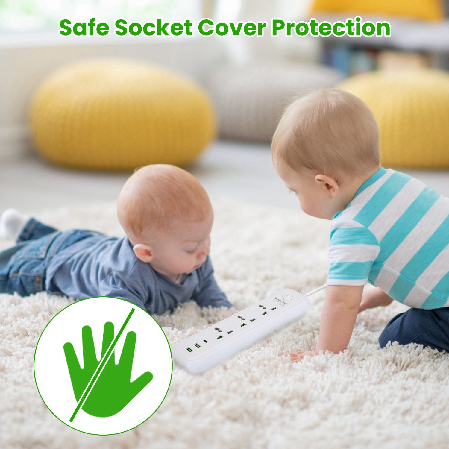 • *Safe Socket Cover Protection*: The safety protection cover is designed to automatically open when the plug is inserted and close when it's removed,effectively preventing children from inserting their fingers or metal objects into the socket and causing accidents. Additionally,sturdy and impact-resistant material ensures long-term stable operation of this USB power strip.